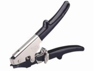 For continuous use on-the-job. The TY6 Tensioning Tool is designed for a heavy user of nylon ties. An adjustment knob allows installer to set desired tension for securing flex duct to a take-off collar. When the tie is tight, a breakaway spring mechanism releases the tool's lower handle, causing the blade to engage and automatically flush cut off the excess tail of the nylon tie. No extra operation for manual trimming is required. Nylon tie installation is fast and easy with the TY6. Works on all ties including thin designs. Operating the TY6 is easy on the installer too Contoured handles, with stops, are easier to grasp. Also, smooth lever action and vinyl cushion grips minimize hand and arm fatigue on big jobs. The TY6 features a hardened steel body, long wearing parts, and a weather resistant nickel chrome finish to assure many years of dependable service.