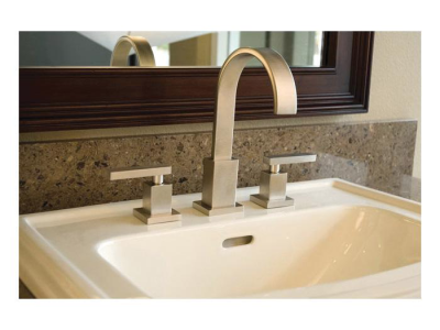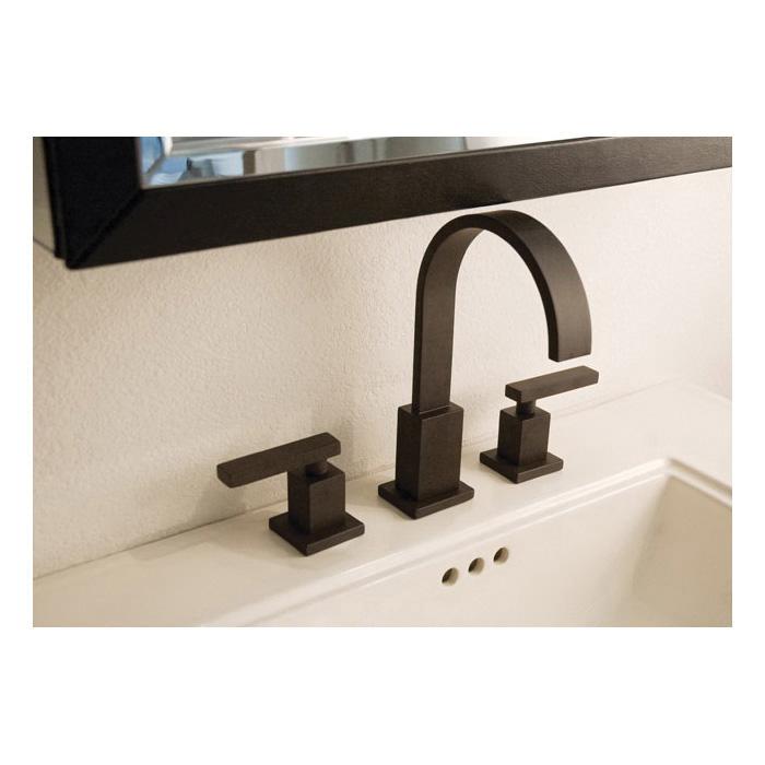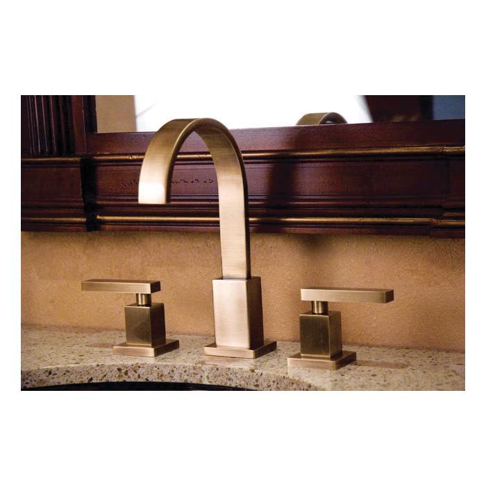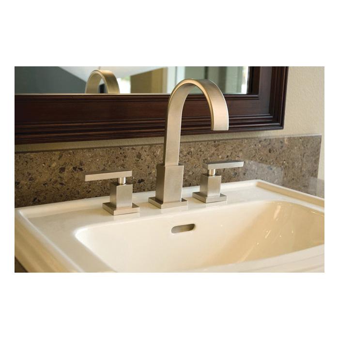 Newport Brass® 2040/15S Model 2040 Secant Widespread Lavatory Faucet, 1.2 gpm Flow Rate, 6-3/4 in H Spout, 8 to 20 in Center, PVD Satin Nickel, 2 Handles, Pop-Up Drain