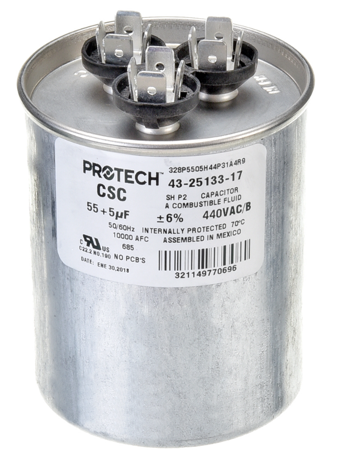 Ruud 43-25133-17 55/5/440 Dual Round Capacitor