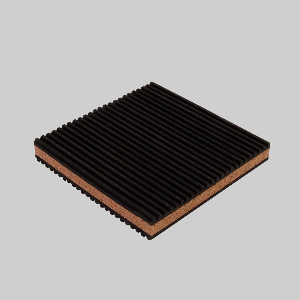 The DiversiTech® MP-6C is a 6 in. x 6 in. x 7/8 in. rubber/cork anti-vibration pad designed to reduce vibration and noise emanating from refrigeration and air conditioning equipment. Rubber pads laminate to the cork center providing excellent vibration and noise reduction. Corrugated ribs on top and bottom reduce "walking" or "creep" associated with vibration. The 6 in. x 6 in. sheets can be cut to any application size requirements. These pads are designed to withstand 50 psi.