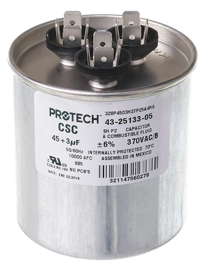 Ruud 43-25133-05 45/3/370 Dual Round Capacitor