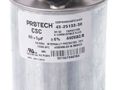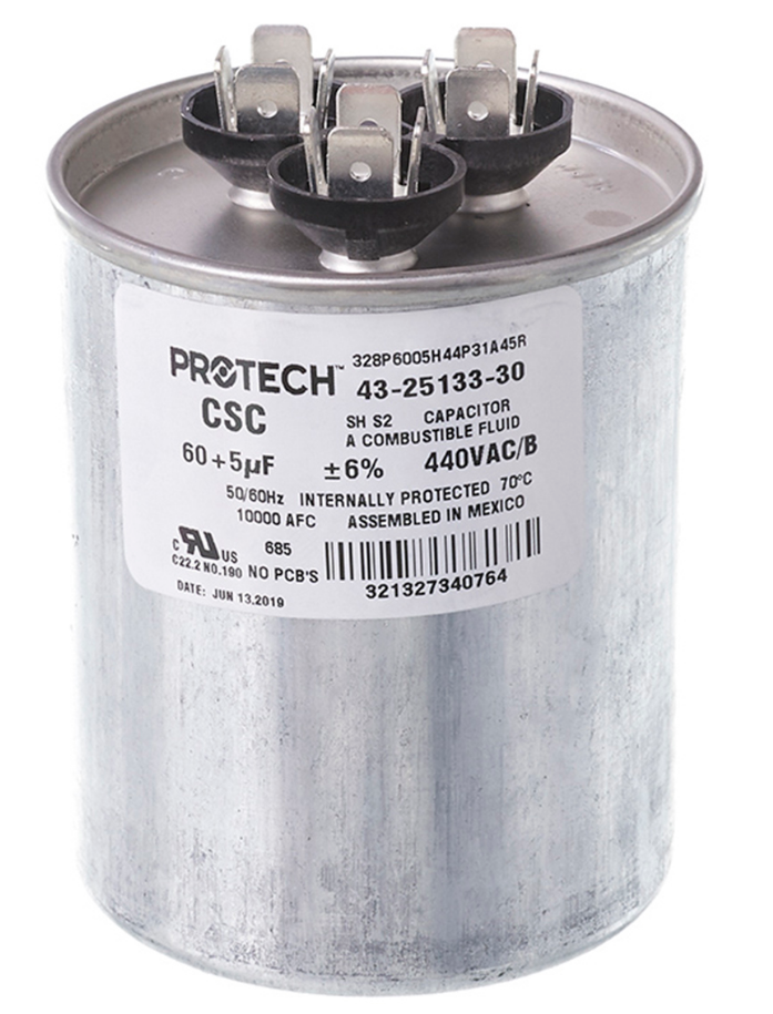 Ruud 43-25133-20 60/5/440 Dual Round Capacitor