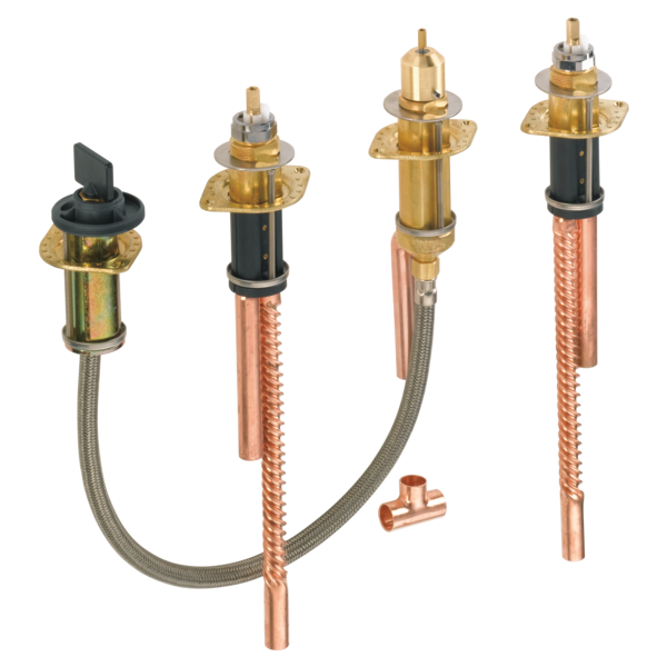 This 4-hole roman tub rough provides flexible installation for deck or ledge mount applications. Pair with Brizo roman tub trim kits that are ordered separately.