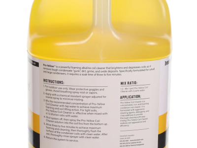 MasterCare® PRO-YELLOW is a powerful cleaner ideal for condensers, micro-channels, and mini-splits that targets large concentrations of dirt and grime. With its heavy foaming alkaline-based solution, debris will be removed from the coil while providing excellent brightening. 1 gallon makes 4 gallons of coil cleaner.