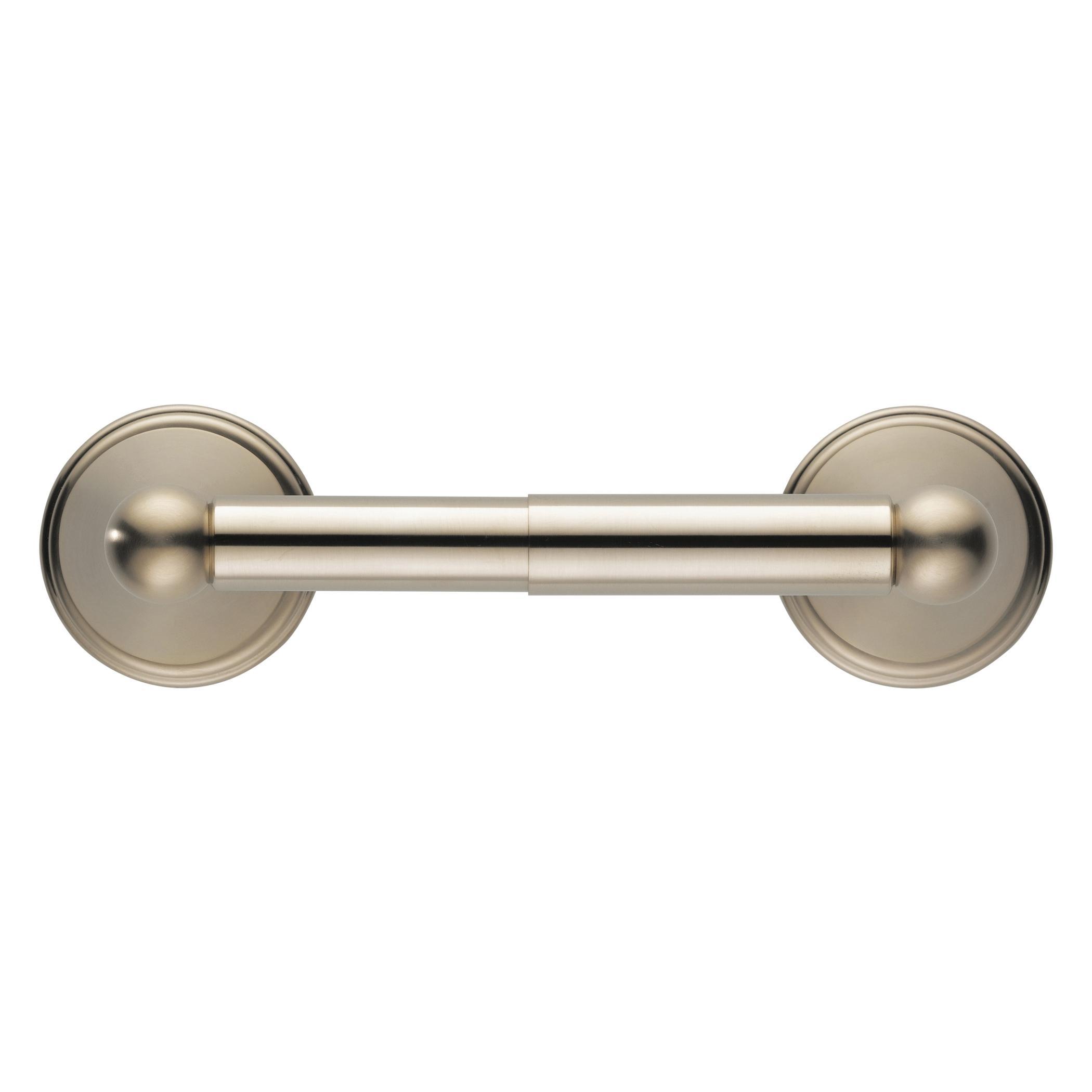 Brizo® Toilet Tissue Holder, Traditional, Series: 69550, Collection: Baliza®, 2-7/16 in Height, 8-1/2 in Length, 3-5/8 in Width, Wall Mount, Die-Cast Zinc, Brushed Nickel, Import