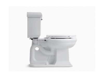 Kohler® Toilet, 2-Piece, Memoirs® Classic Comfort Height® Collection, 1.28 gpf Flush, Elongated Bowl, 16-1/2 in Rim Height, 12 in Rough-In, 2-1/8 in Trapway, Floor Mounting, AquaPiston® Flushing System, 10 in W Bowl, 17-13/16 in W x 31-7/16 in D x 30-3/8 in H Overall, Vitreous China, White