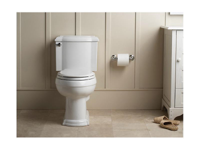 This Devonshire two-piece toilet combines high efficiency with the old-world style of the Devonshire collection. Its single 1.28 gal flush setting provides significant water savings of up to 16,500 gal per year (versus an old 3.5 gal toilet) without sacrificing performance. An elongated bowl and comfortable height ensure ease of use.