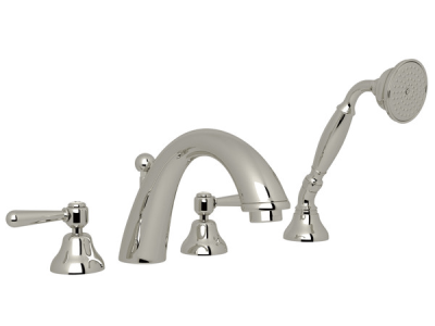 ROHL A2764LMPN Verona 4-Hole Deck Mount C-Spout Tub Filler with Handshower - Polished Nickel