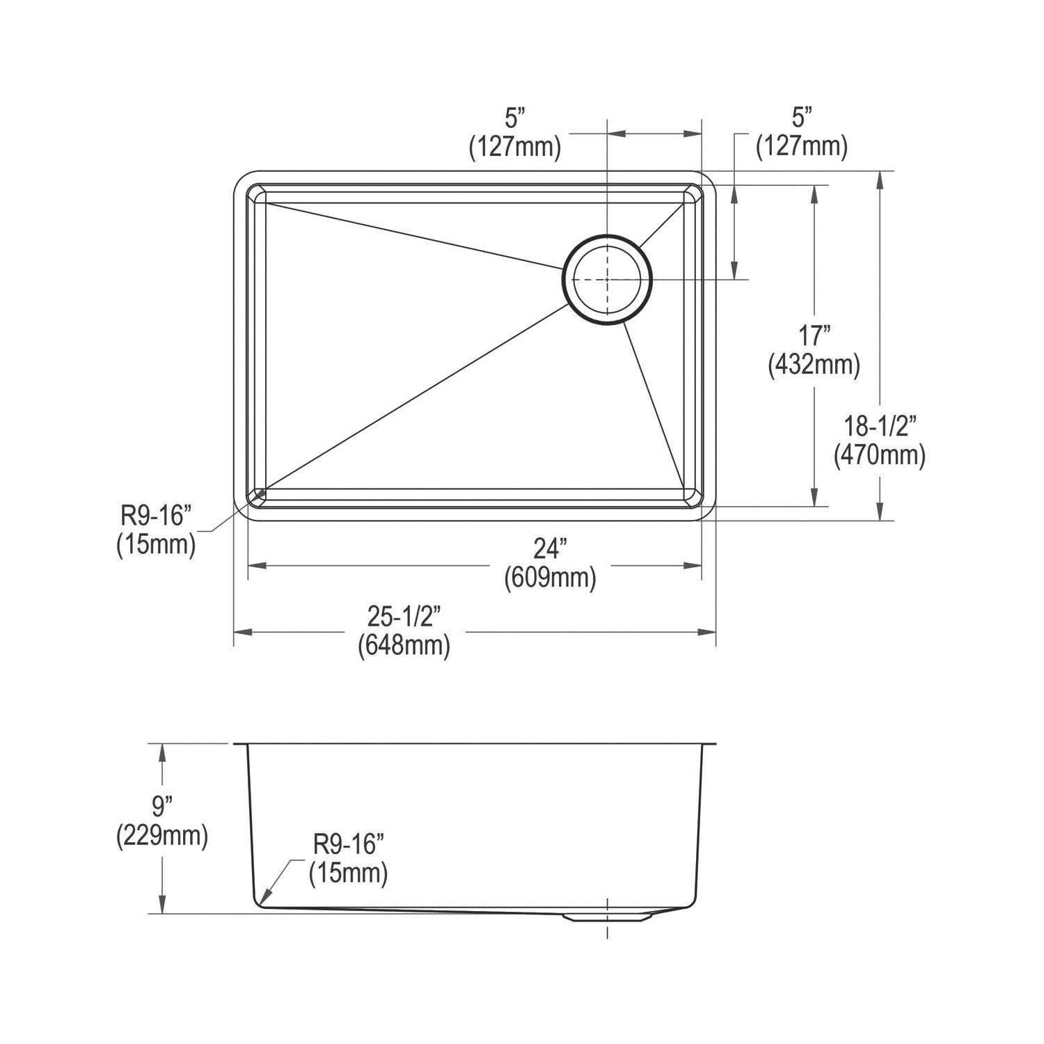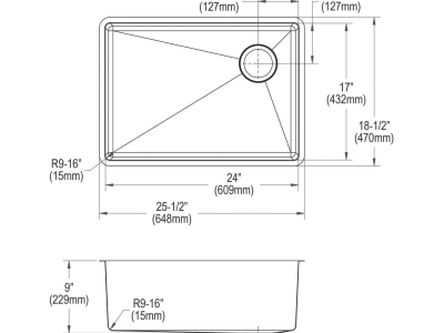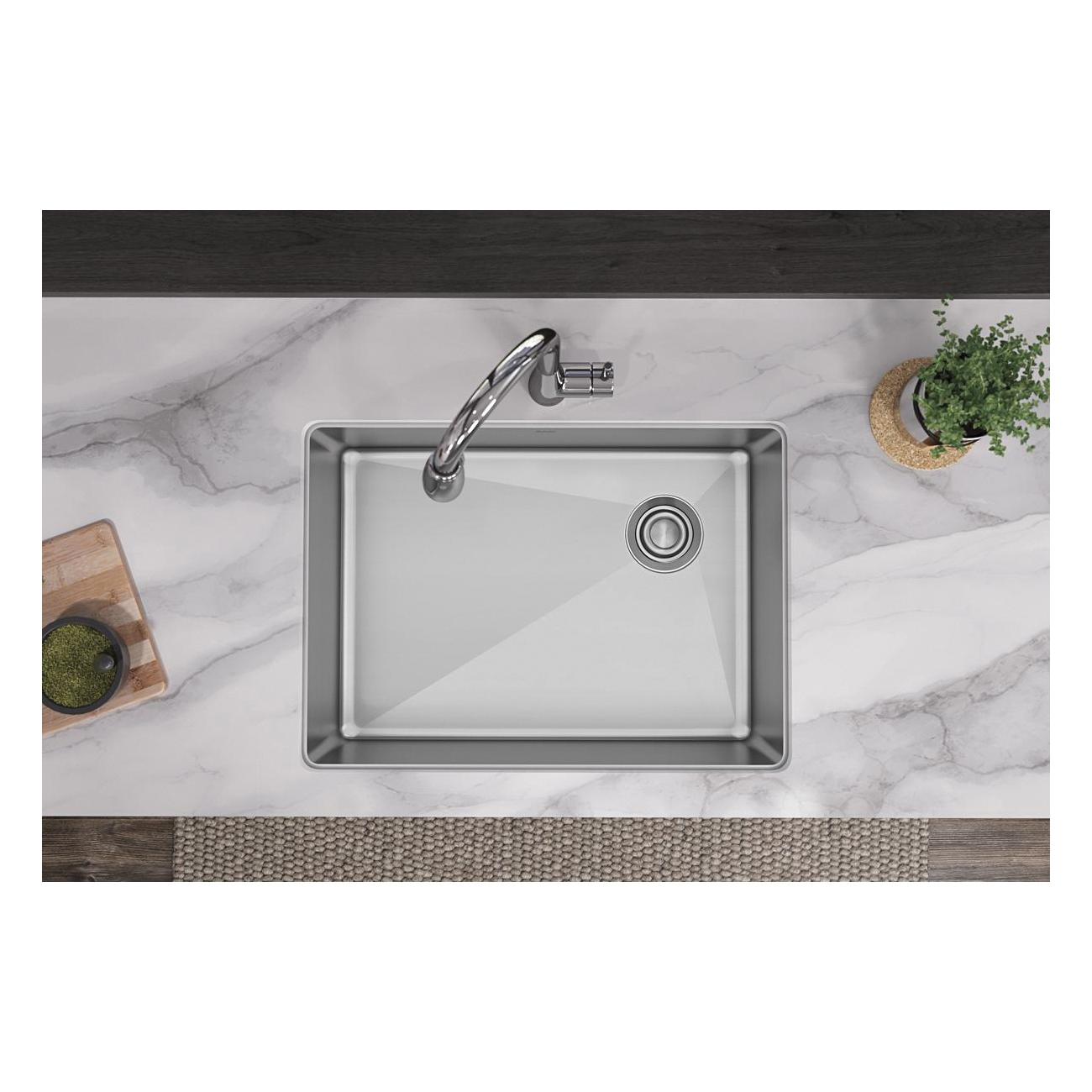 Elkay®, ECTRU24179RT, Kitchen Sink, Transitional, Crosstown® Collection, Rectangle Shape, 24 in Bowl Length, 17 in Bowl Width, 9 in Bowl Depth, 3-1/2 in Drain Opening, 1 Bowls, 25-1/2 in L x 18-1/2 in W x 9 in H Overall, Undermount Mounting, 18 ga 304 Stainless Steel, Polished Satin, Import