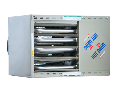 The ideal heating solution for residential garages and workshops, along with light commercial or industrial applications. With versatile installation options, the Hot Dawg(R) garage heater frees up more workspace by getting rid of space heaters that clutter up the area. The quiet operation allows your space to be warm without the distraction of a loud machine running in the background.