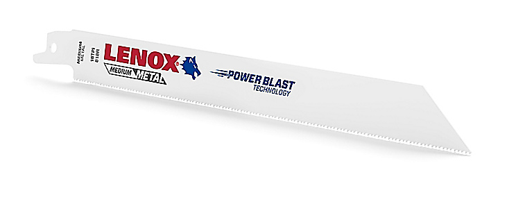 LENOX has defined performance in the reciprocating saw blade category since inventing the first bi-metal blade in 1977. LENOX has used its century of cutting expertise to lead the way in reciprocating blade performance and is redefining performance levels in the bi-metal reciprocating category with the introduction of Power Blast Technology. Power Blast Technology refers to a high speed blasting process known as peening, which is applied to the tang and cutting edge of LENOX Bi-Metal Reciprocating Saw Blades to reduce breaks and increase durability. The process is commonly used in the aerospace and automotive industries to strengthen steel and has been used in manufacturing LENOX Band Saw blades for years. By blasting the cutting edge and tang of the blade, a layer of compressive stress is created on the surface of the blade in the areas that receive the most abuse. This compressive stress reduces the formation of cracks which causes blade failure.