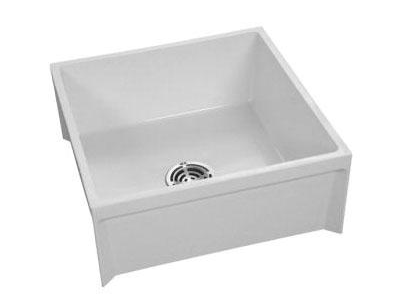 FIAT® Mop Service Basin, Squared Shape, 24 x 24 in Bowl, 1 Basin, 24-3/16 in W x 24-3/16 in D x 10 in H Overall, Molded Stone, White