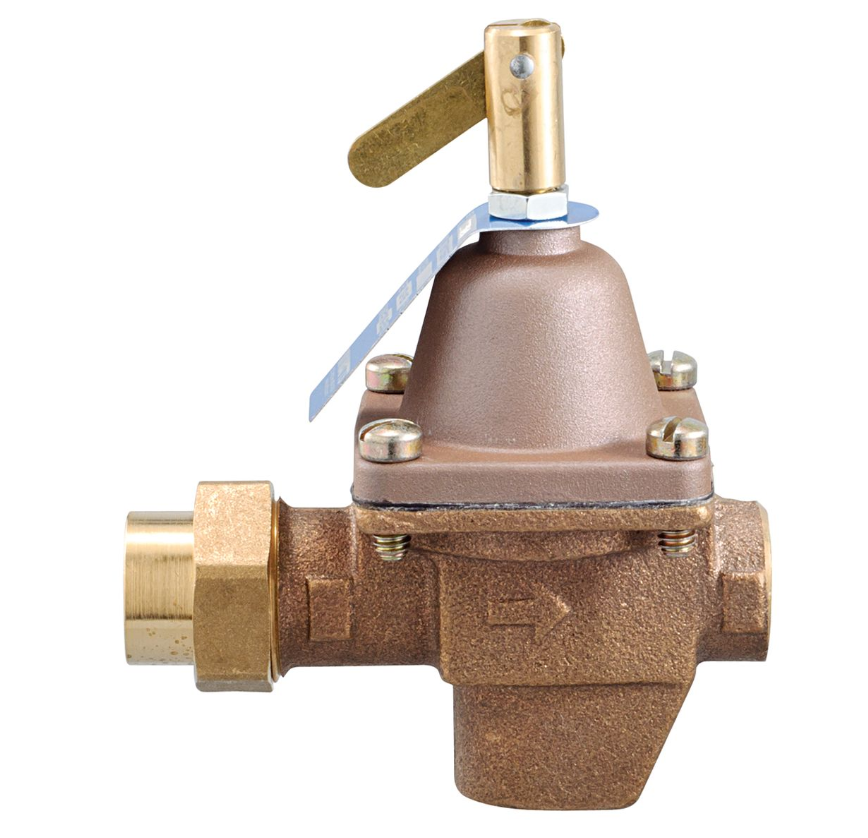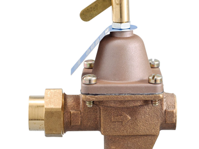 This 1/2 inch high capacity feed water pressure regulator is for use in commercial and residential hydronic heating systems to fill the boiler and piping system with water, and to maintain water pressure in the system at all times. It also provides make-up water to the system in the event of system leaks. It consists of a bronze body with union threaded inlet and NPT threaded outlet connections, a tight seating check valve, purge lever for manual purging, and a stainless steel strainer. It has high capacity performance and a simplified servicing design. It is suitable for use in the boiler feed lines of hydronic heating systems. The maximum pressure is 100 psi