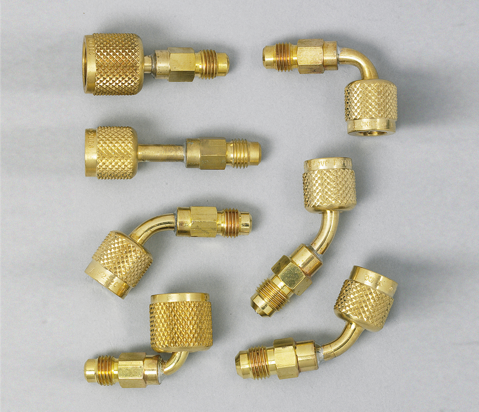 All couplers have schrader valve cores in male flare end. female coupler end has deep knurling for easy handling Patented CH14 "Adjust-A-Valve" opener in all 1/4 in female ends made in the USA.