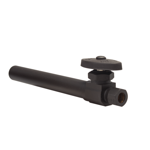 BrassCraft 1/2 in. Nominal Sweat Inlet x 3/8 in. OD Compression Outlet Multi-Turn Straight Valve with 5 in. Sweat Extension Tube and Bell Escutcheon controls water flow to household plumbing fixtures - faucets, toilets, dishwashers, icemakers, washing machines, etc. The straight valve is most often used where the water pipe enters the room from the floor. With a few turns of the valve handle, you are able to stop the flow of water leading to the plumbing fixture, allowing for maintenance and repair without turning off water to the entire home.