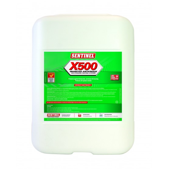 Sentinel X500 Inhibited Antifreeze provides protection against limescale, corrosion and freezing. Protects all system metals against corrosion using the same unique blend of inhibitors as Sentinel X100 Inhibitor, but has the added benefit of protecting system water against freezing. Enhanced limescale and corrosion protection - Protects all system metals including aluminum against corrosion. Ensures optimum boiler efficiency - Prevents boiler noise - Prevents pin holing - Helps prevent the formation of hydrogen gas