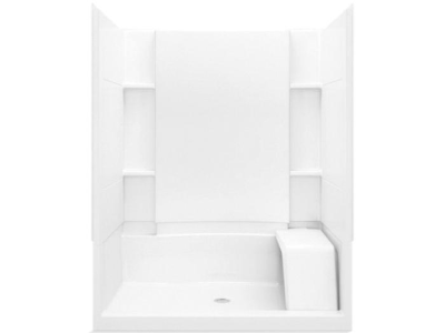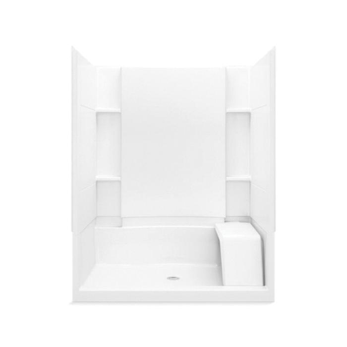 Sterling® Complete Seated Shower Back Wall, Series: 72290100, Accord®, Rectangle, 60-1/4 in Length, 37-1/4 in Width, 76 in Height, 3 Wall Panels, Center Drain, Alcove Mount, Solid Vikrell®, White