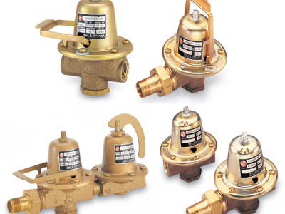 B & G reducing valves protect heating and plumbing systems against excessive line pressures. They are factory set at specified limits although adjustments are easily made. Equipped with built-in strainer and low inlet pressure check valve. Tail piece for union models are combination - 1/2 copper sweat and 1/2 male NPT.