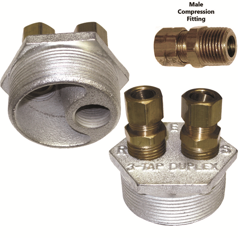 Beckett 14470 2 inch X 1/2 inch Cast Iron 3-Way Duplex Tank Bushing with Fittings