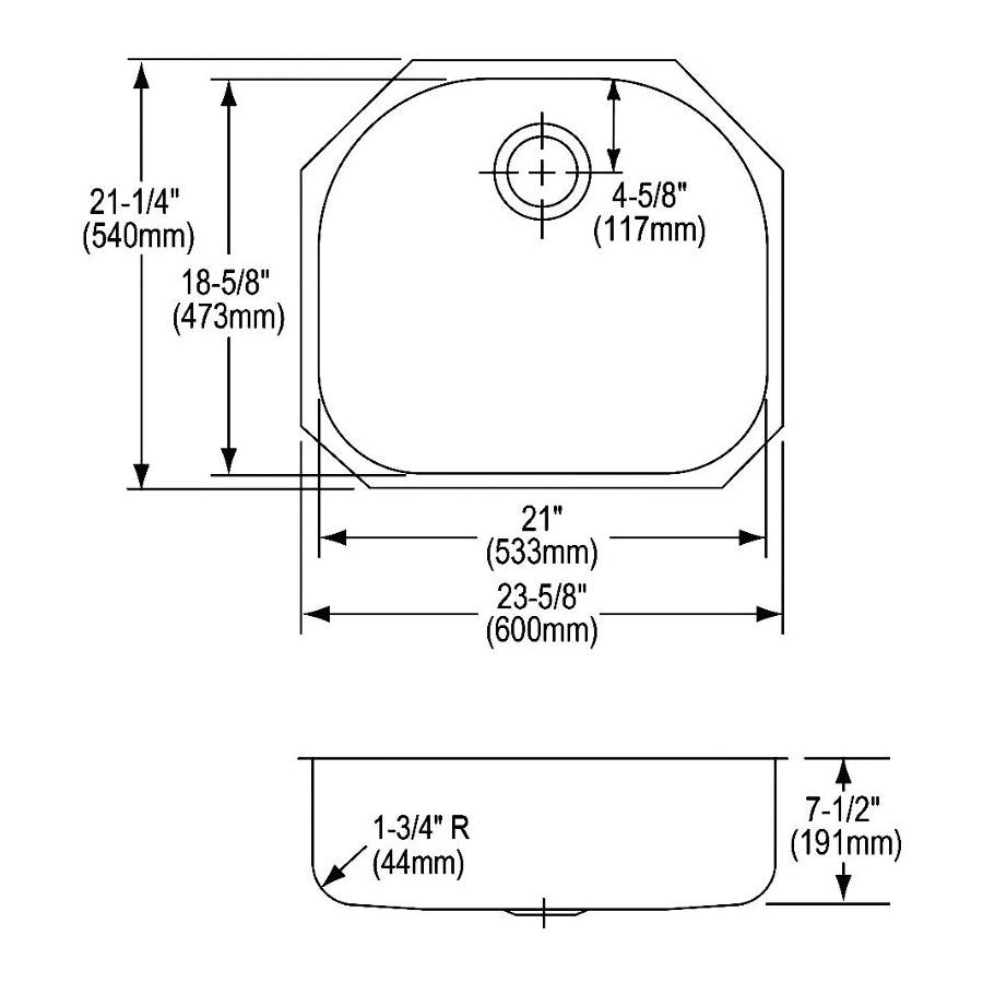 Elkay®, ELUH2118, Kitchen Sink, Lustertone™ Classic Collection, 21 in Bowl Length, 18-5/8 in Bowl Width, 7-1/2 in Bowl Depth, 3-1/2 in Drain Opening, 1 Bowls, 23-5/8 in L x 21-1/4 in W x 7-1/2 in H Overall, Undermount Mounting, 18 ga 304 Stainless Steel, Domestic