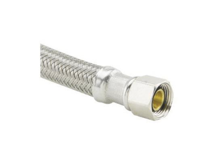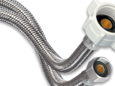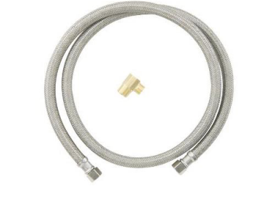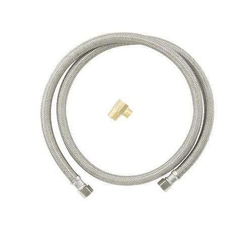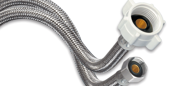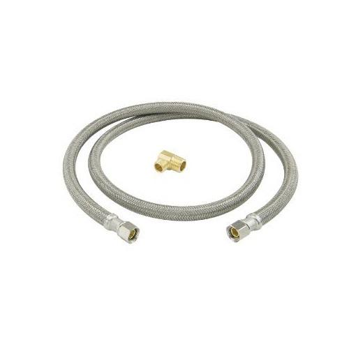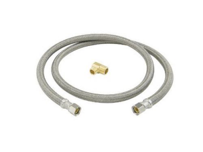 BrassCraft® Speedi Plumb® PLUS 3/8 in Compression inlet x 3/8 in Compression outlet flexible braided polymer water connector with 3/8 in Male Iron Pipe Elbow adaptor. Used to connect the water supply to your dishwasher, this connector features a high tenacity, multi-filament yarn, protected by a special polymer coating for optimum corrosion resistance and durability. On the inside, our tough PVC tubing resists attack by chlorine, chloramines and other corrosive elements. The braided polymer fibers are designed to bend freely without kinking or crimping.