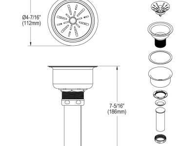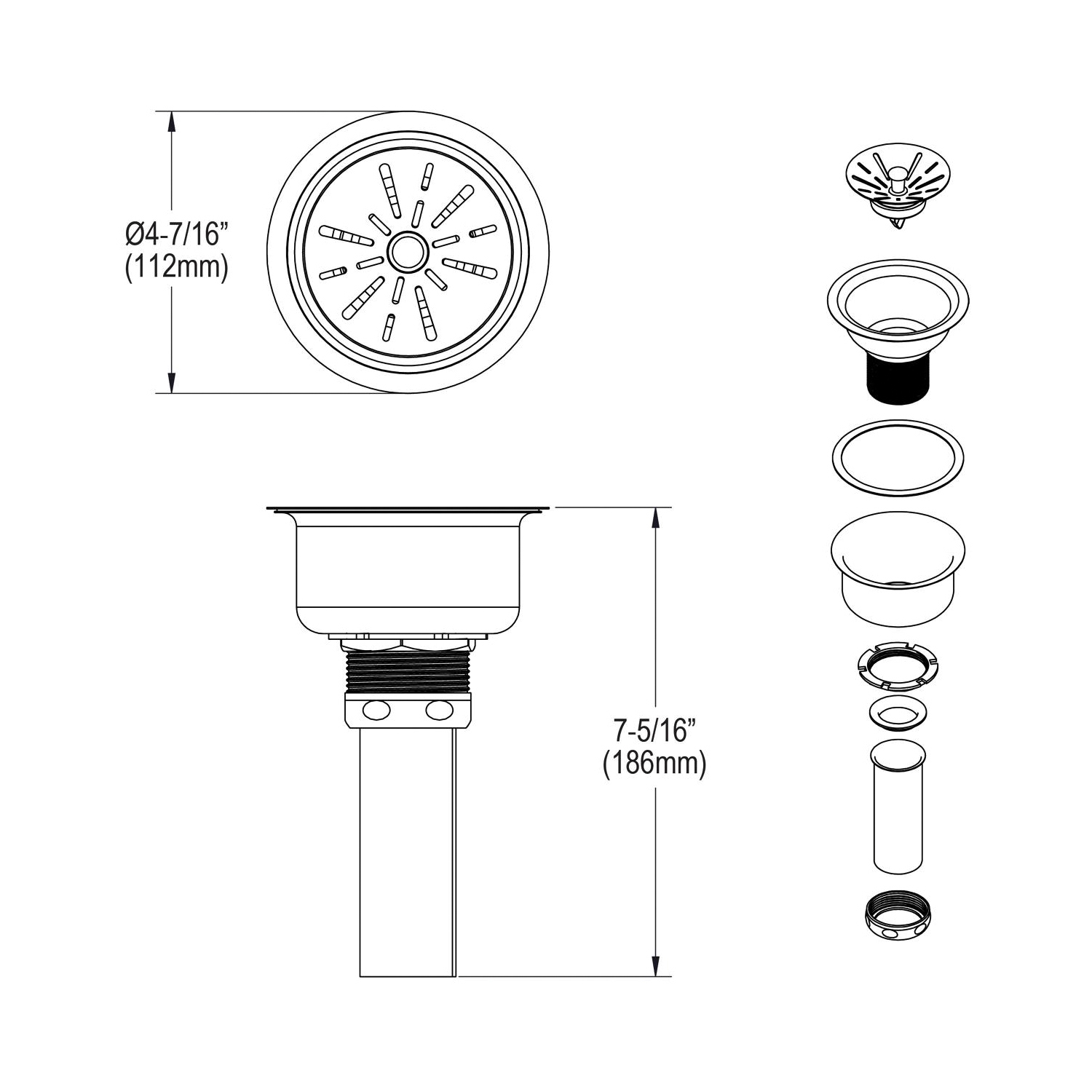 Elkay® Drain Fitting, 3-1/2 in Nominal, 304 Stainless Steel Drain, Overflow Yes/No: No, Includes Lift Rod: No, Polished Stainless Steel, 4-7/16 in Dia x 7-5/16 in H Dimensions, Import