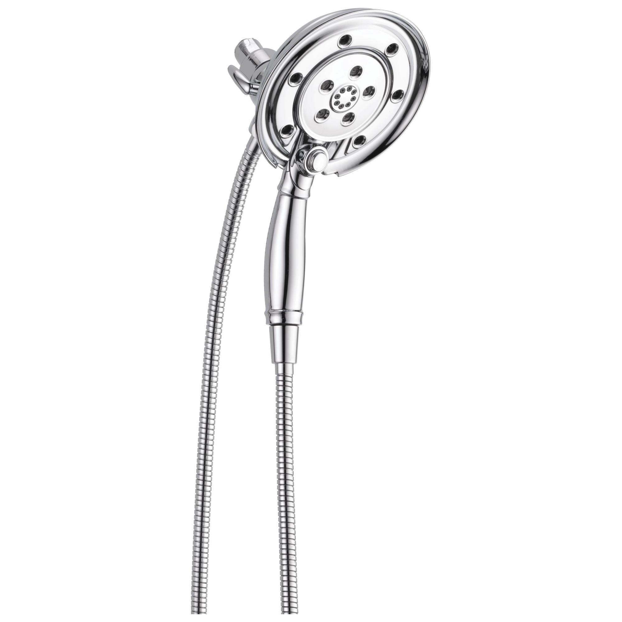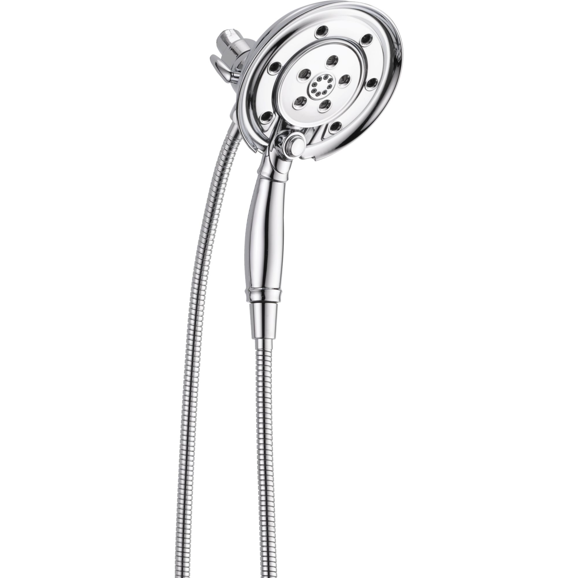 DELTA® Shower, 2-in-1, In2ition® Collection, 6-1/8 in Shower Head Diameter, 4-Function Shower Head Patterns, 2.5 gpm Flow Rate, 60 in Hose Length, H2Okinetic®/H2Okinetic® with Massage/Massage/Pause Spray, 80 psi Pressure, 1/2 in Connection, Metal Hose, Plastic, Polished Chrome, 5-7/32 in D x 10-15/32 in H Dimensions, Import