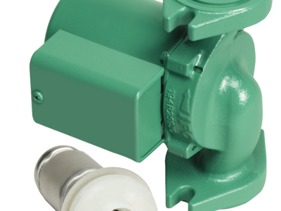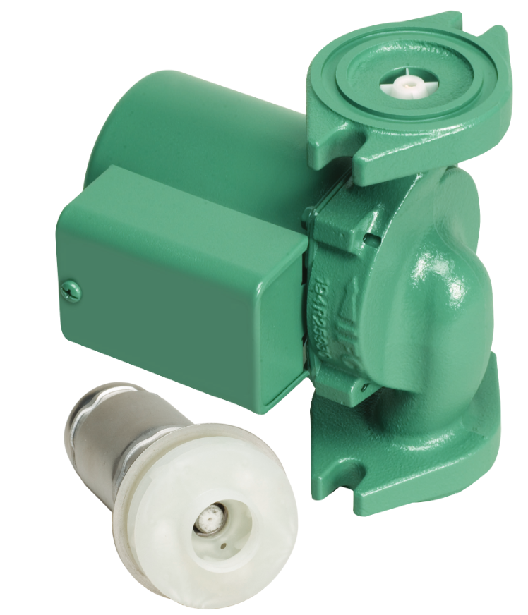 The Taco 008-IFC features a removable integral flow check designed to simplify piping, reduce installation costs and improve system performance. The spring loaded IFC replaces a separate in line flow check. The 008-IFC is designed for a wide range of residential and light commercial higher-head circulating applications. Typical uses include hydronic heating, radiant in-floor/panel heating and closed-loop solar heating systems. The unique replaceable cartridge contains all of the moving parts and allows for easy service, instead of replacing the entire circulator. Compact, direct-drive, low power consumption design is ideal for high-efficiency jobs. Self lubricating - No mechanical seal - Universal flange dimensions