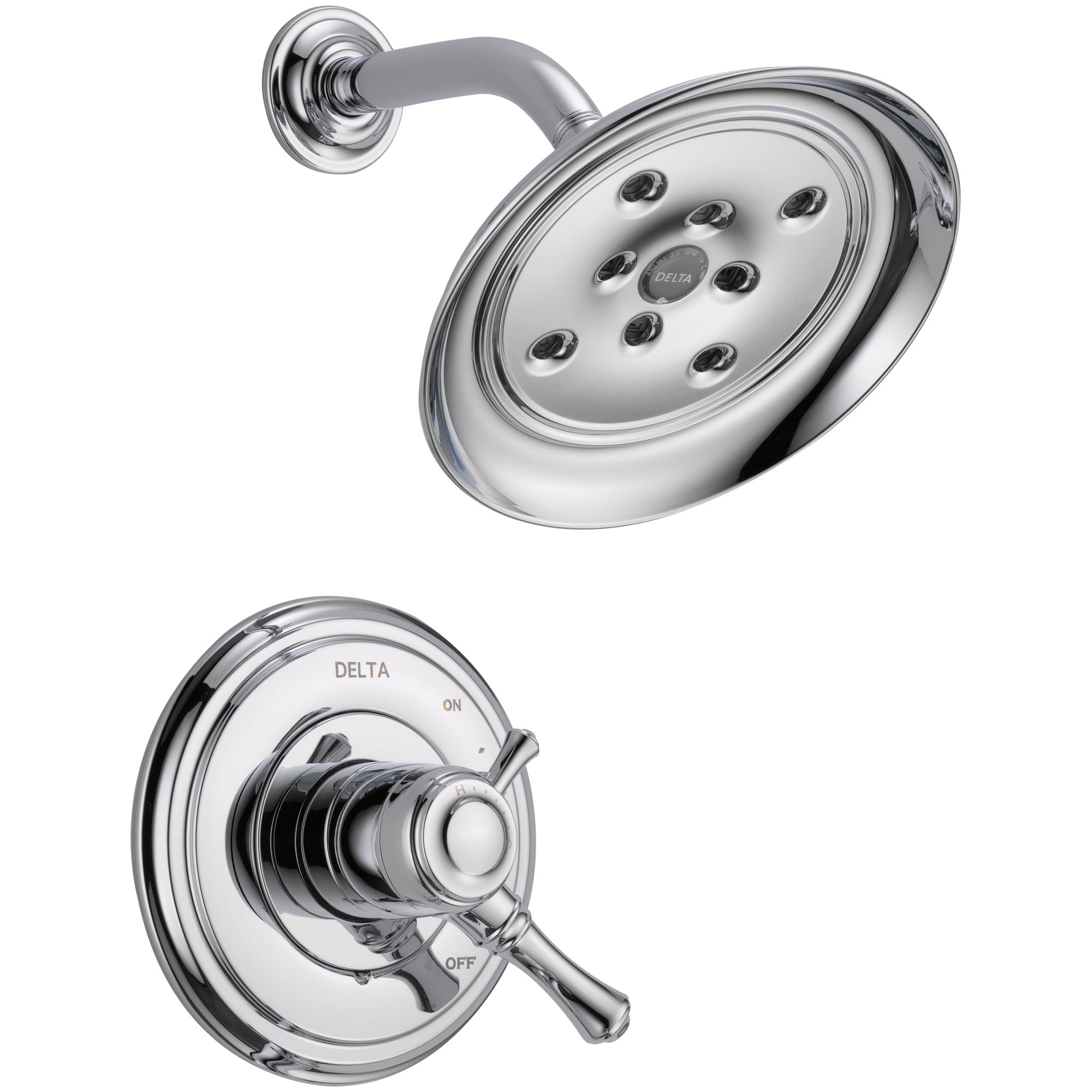 DELTA® Shower Trim, Series: Monitor® 17, Cassidy™ Collection, 1.75 gpm Shower Flow Rate, 2 Handles, Lever Handle, 7 in Dia Trim, 1222 Pressure Balanced, Hand Shower: No, Spray Pattern: H2Okinetic®, 1 Spray Functions, Wall Mounting, Solid Brass, Polished Chrome, Commercial Commercial/Residential