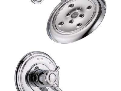 Delta® H2Okinetic® Showers look different because they are different. Using advanced technology, H2Okinetic showers sculpt water into a unique wave pattern, giving you 3X the coverage of a standard shower head.* The end result is a shower that provides more coverage, more warmth and more intensity for a truly drenching shower experience. With separate handles for volume and temperature control, this Delta tub/shower provides a more refined showering experience. Simply set the water at your preferred temperature and turn the shower on or off with the volume control handle - without interrupting your set temperature. Delta® pressure-balance valves use Monitor® Technology to protect you and your family from sudden temperature changes. Chrome has rapidly become one of the most popular finishes across décor styles in the bath thanks to its stunning gloss and innate versatility. Paired with crisp lines and bright whites, it creates a bold, modern contrast, but it works equally well with vintage styles and traditional spaces to convey a hint of nostalgia. Delta WaterSense labeled faucets, showers and toilets use at least 20% less water than the industry standard—saving you money without compromising performance.