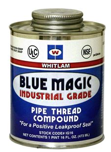 BLUE MAGIC is an all purpose, non-seizing, idustrial grade thread sealing compound that produces a leakproof seal on all types of plastic and metal (including stainless steel) threaded connections. BLUE MAGIC is a smooth, grit free, completely homogenized, blue industrial grade paste.
