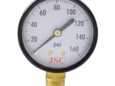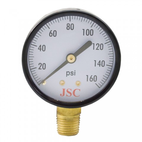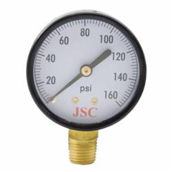 Jones Stephens™ Pressure Gauge, 0 to 160 psi, 1/4 in MNPT, 2-1/2 in Dial Diameter, 2.5-2 % Accuracy, Lower Mount, Steel Case, 3-1/4 in H