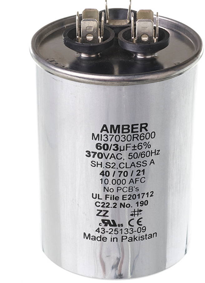 Ruud 43-25133-09 60/3/370 Dual Round Capacitor