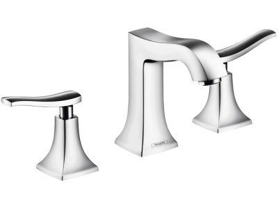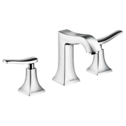 Hansgrohe Widespread Bathroom Faucet, Metris C, 1.2 gpm, 8 in Center Distance, Mid-Arc Spout, 5 in Spout Reach, 4 in Spout Height, Lever Handle, 2 Handles, Pop-Up Drain, 3 Faucet Holes, 1/2 in Connection, Spray Pattern: Aerated, 1-3/8 in Maximum Deck Thickness, Deck Mounting, 90 deg Ceramic, 14 in W x 5-1/2 in H, Solid Brass, Polished Chrome, Import, Commercial/Residential: Commercial