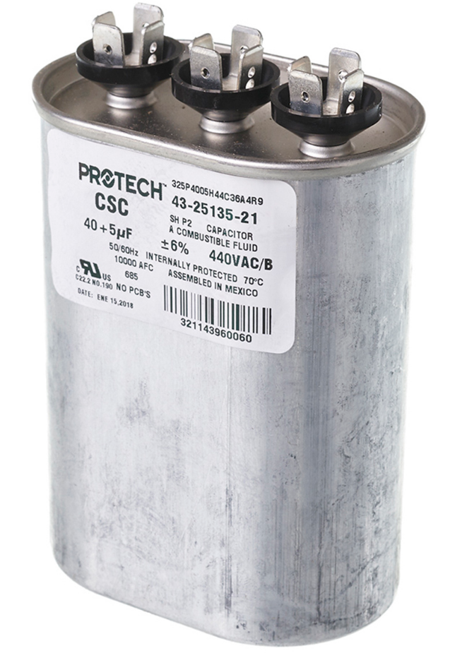 Ruud 43-25135-21 40/5/440 Dual Oval Capacitor