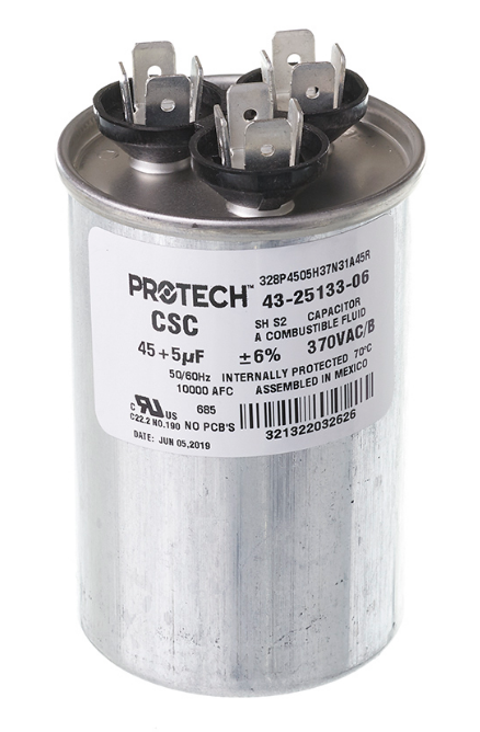 Ruud 43-25133-06 45/5/370 Dual Round Capacitor