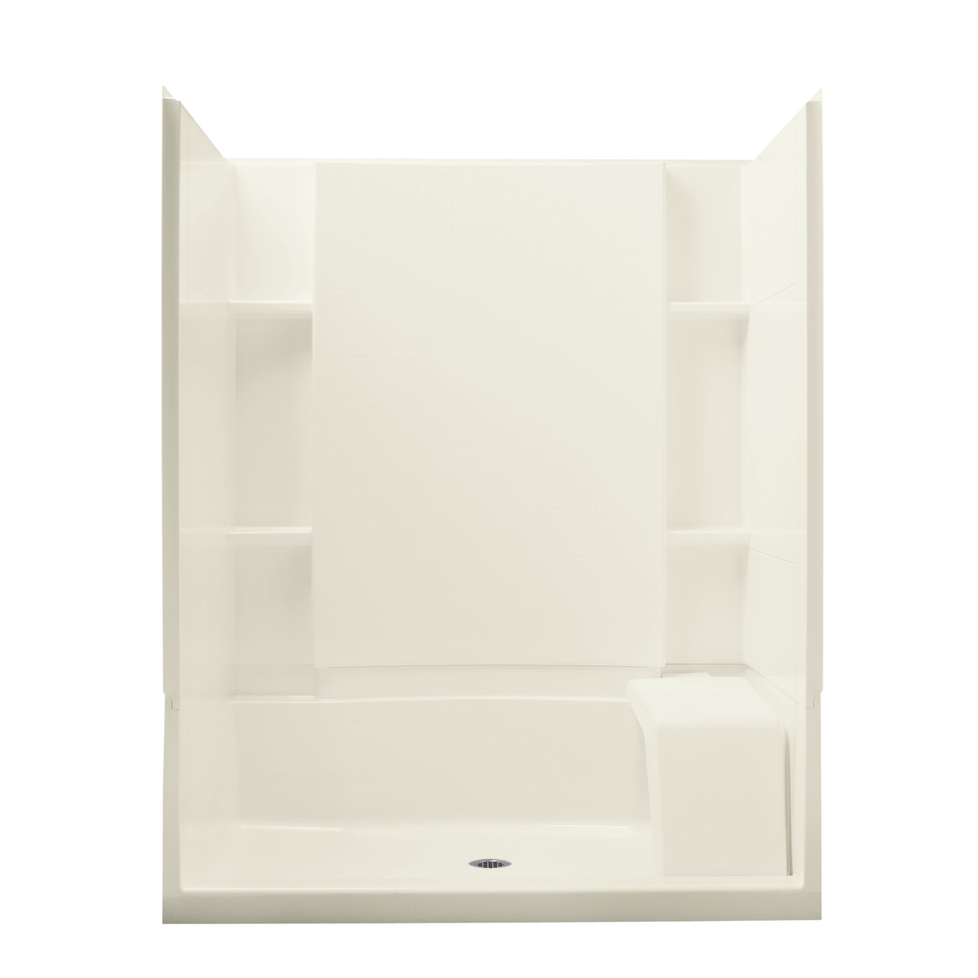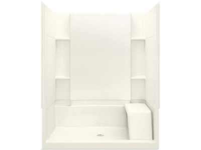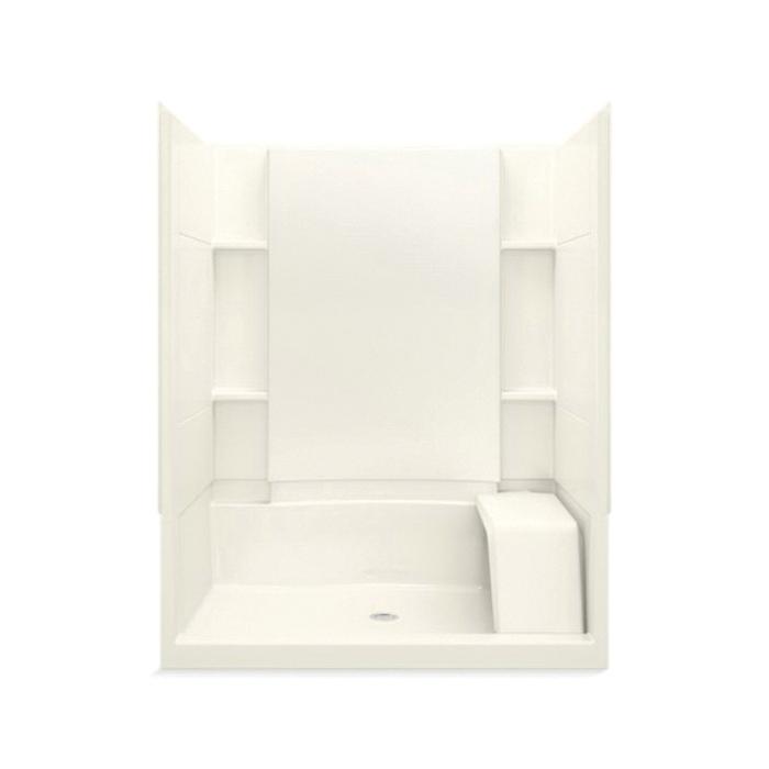 Sterling® Complete Seated Shower Back Wall, Series: 72290100, Accord®, Rectangle, 60-1/4 in Length, 37-1/4 in Width, 76 in Height, 3 Wall Panels, Center Drain, Alcove Mount, Solid Vikrell®, Kohler® Biscuit