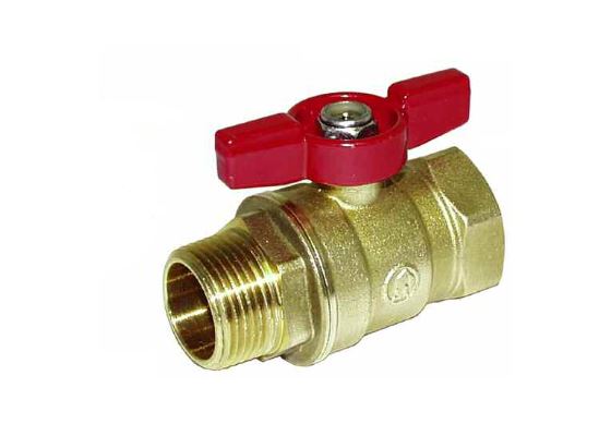No lead forged brass mini-ball valve, with Dacromet(R) coated steel handle has vinyal cover.