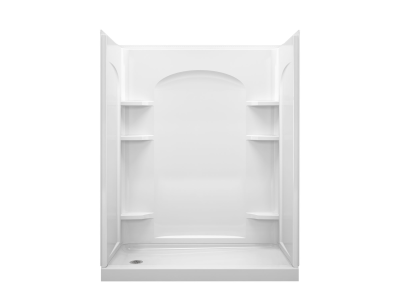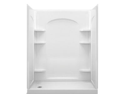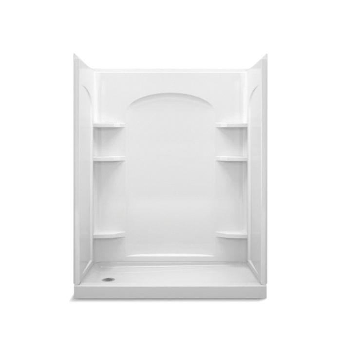 Sterling® Shower Back Wall, 3-Piece, Series: 7217, Ensemble®, Curved, 60-1/4 in Length, 31-1/4 in Width, 76-1/2 in Height, Left Drain, Alcove Mount, Solid Vikrell®, White
