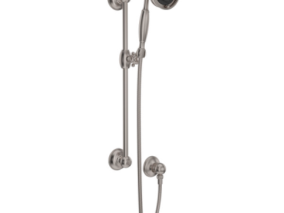 - Slide bar set comes complete with the following items: (1201) slide bar with metal cap on cross handle, (1151/8) 3-function handshower with metal handle, (1295) handshower outlet and (16295) 59" flexible metal hose