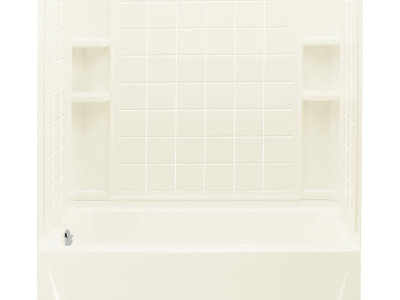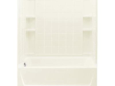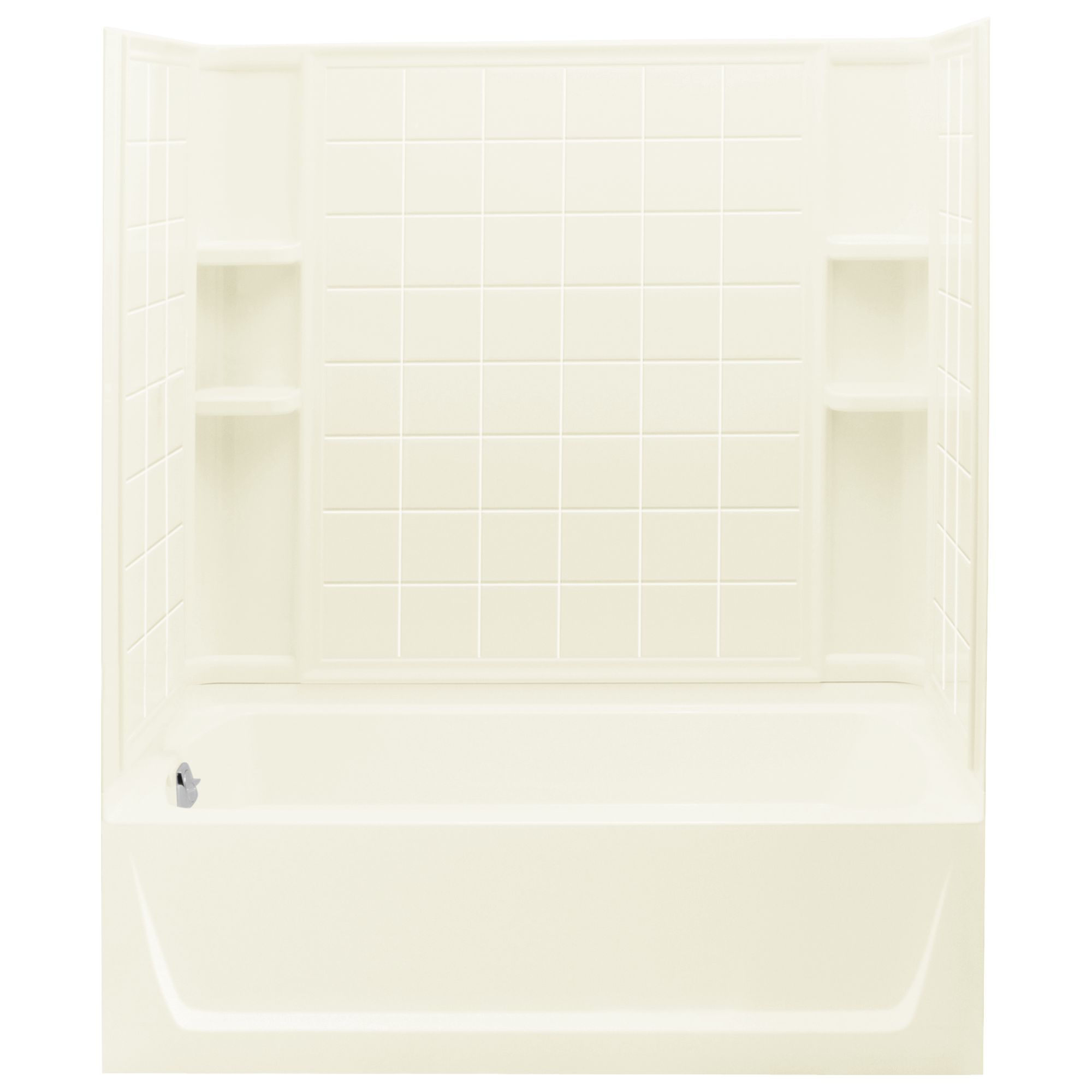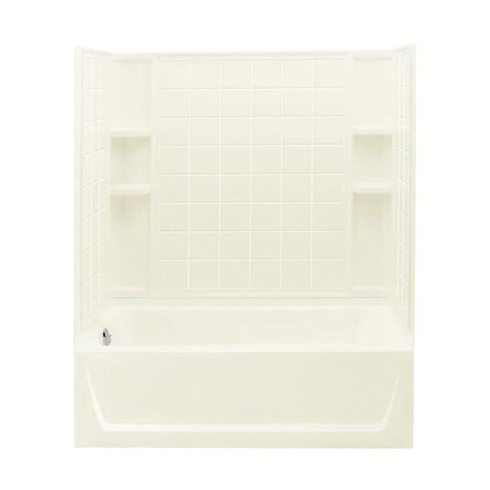 Sterling® Tile Bath/Shower, Tile Look, Series: 7112, Ensemble®, 60-1/4 in Length, 33-1/4 in Width, 75-1/4 in Height, Left Drain Location, 3 Wall Panels, Alcove Mount, Vikrell®, Kohler® Biscuit