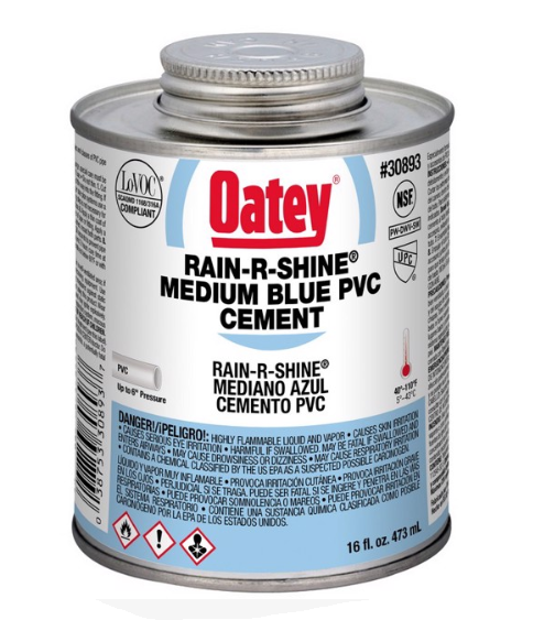 Oatey 30893 Rain-R-Shine Medium Body Blue PVC Cement - 16 ounce