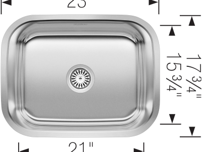 Blanco Laundry Sink, Stellar™ Collection, Rectangle Shape, 12 in H x 21 in W x 15-3/4 in D Bowl, 3-1/2 in Drain Opening, 1 Basins, 23 in W x 17-3/4 in D Overall, Undermount Mounting, 304 Stainless Steel, Refined Brushed