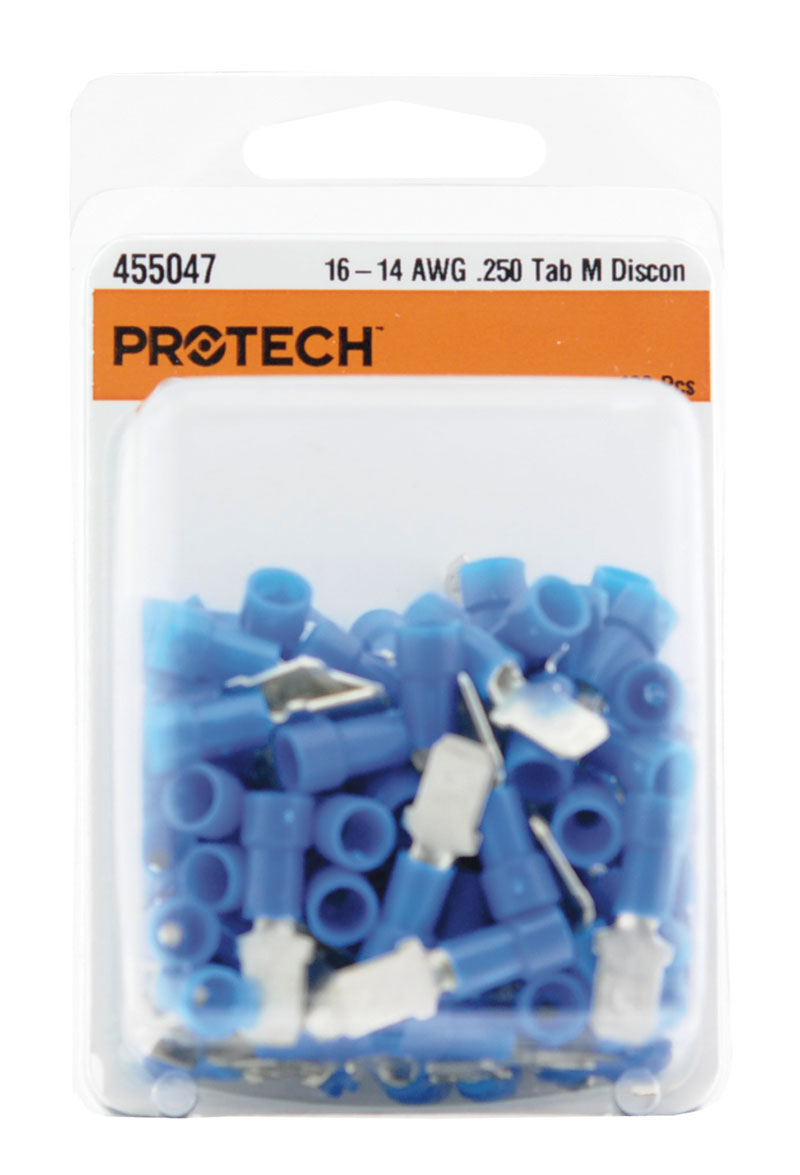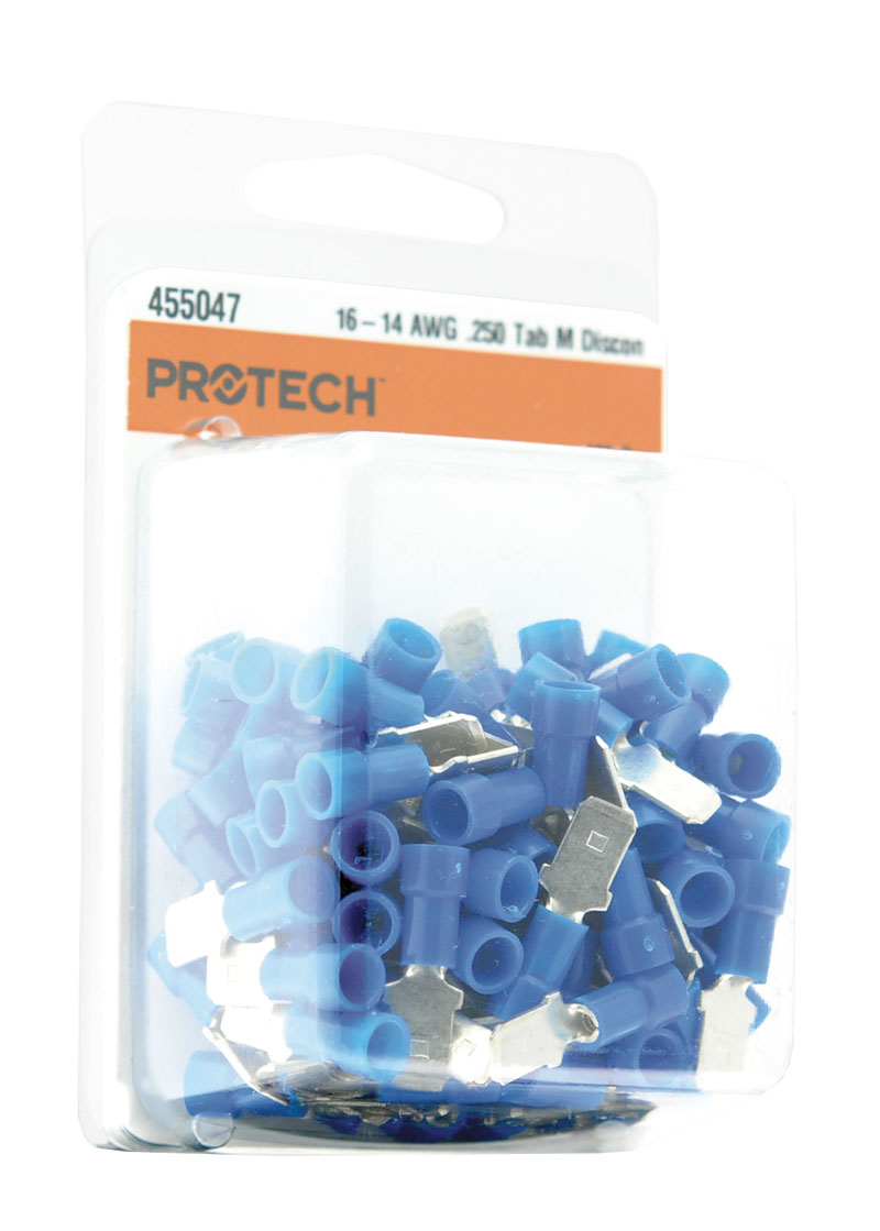 Ruud 455047 Package of 100 1/4 inch Male Insulated Quick Connects for 16 and 14 Gauge Wire - Blue
