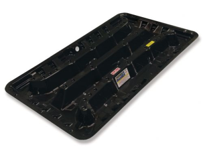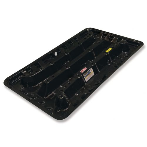 Outer dimensions: 50.50 inchs long - 30.25 inches wide - 4 inches deep - Inner dimensions: 45 inches long - 22.75 inches wide - 2.10 inches deep - Made of advanced polymer DexElar material - One piece pan has rolled edges with no seams - Strong enough to hang using one pair of steel support struts - Risers run the length of the pan - Each pan has indentations for placement of hanging brackets