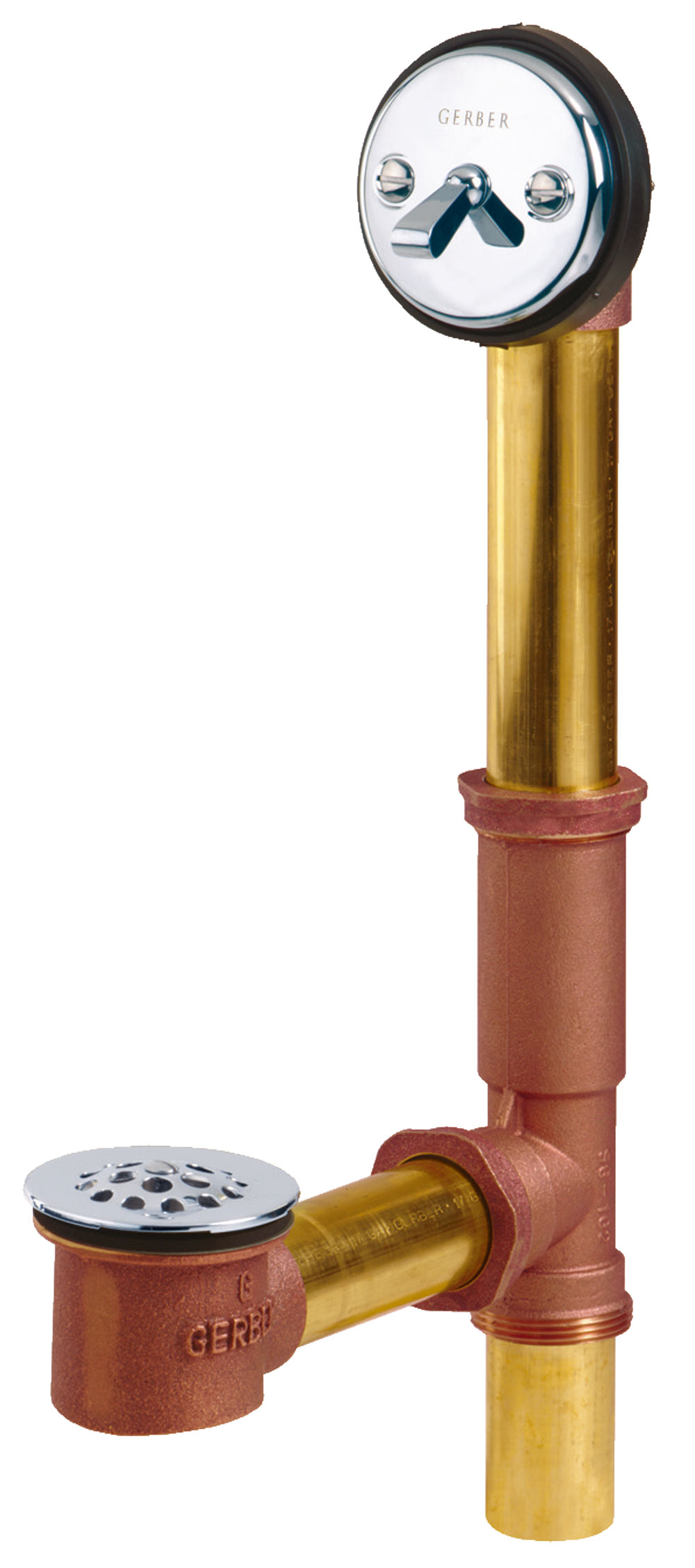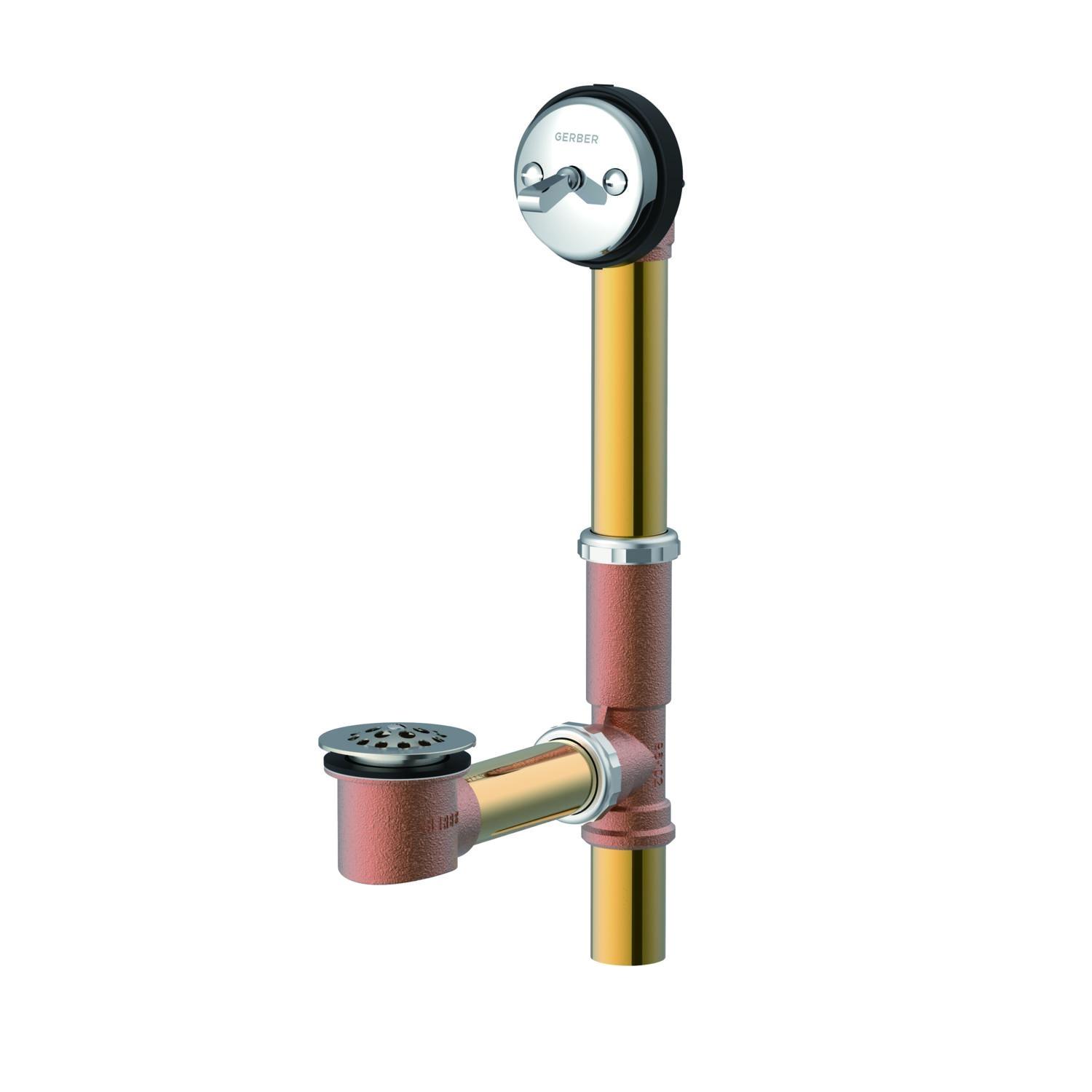 Gerber® Bath Drain, Trip Lever, Series: Classics™, 3-1/2 in Height, 5-1/4 in Width, Brass, For Use With: Classics™ 14 to 16 in H Standard Tub, Polished Chrome, Domestic