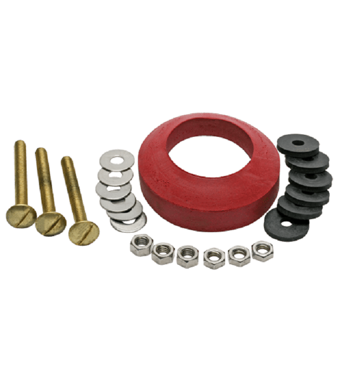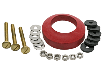 Includes: tank-to-bowl gasket, 3 - brass bolts, washers, and nuts