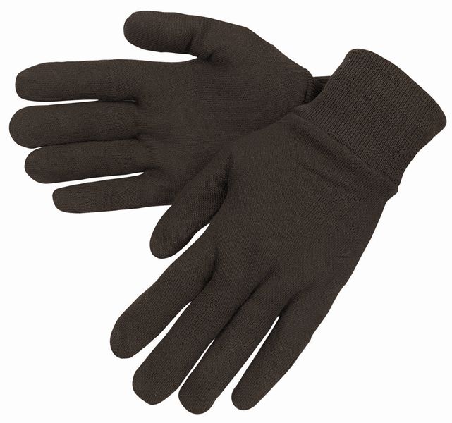 Jones Stephens™ General Purpose Gloves, Jersey Glove Type, Universal Size, 8 oz Cotton, Brown, Knit Wrist Cuff