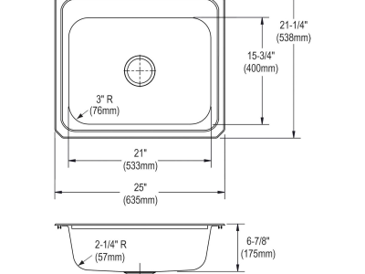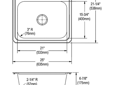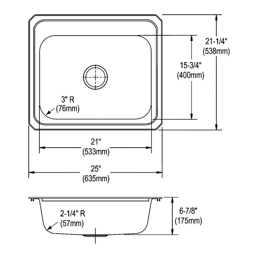 Elkay®, CR25213, Kitchen Sink, Celebrity Collection, Rectangle Shape, 21 in Bowl Length, 15-3/4 in Bowl Width, 6-3/4 in Bowl Depth, 3-1/2 in Drain Opening, 3 Faucet Holes, 4 in Faucet Hole Spacing, 1 Bowls, 25 in L x 21-1/4 in W x 6-7/8 in H Overall, Drop-In Mounting, Stainless Steel, Brushed Satin, Domestic