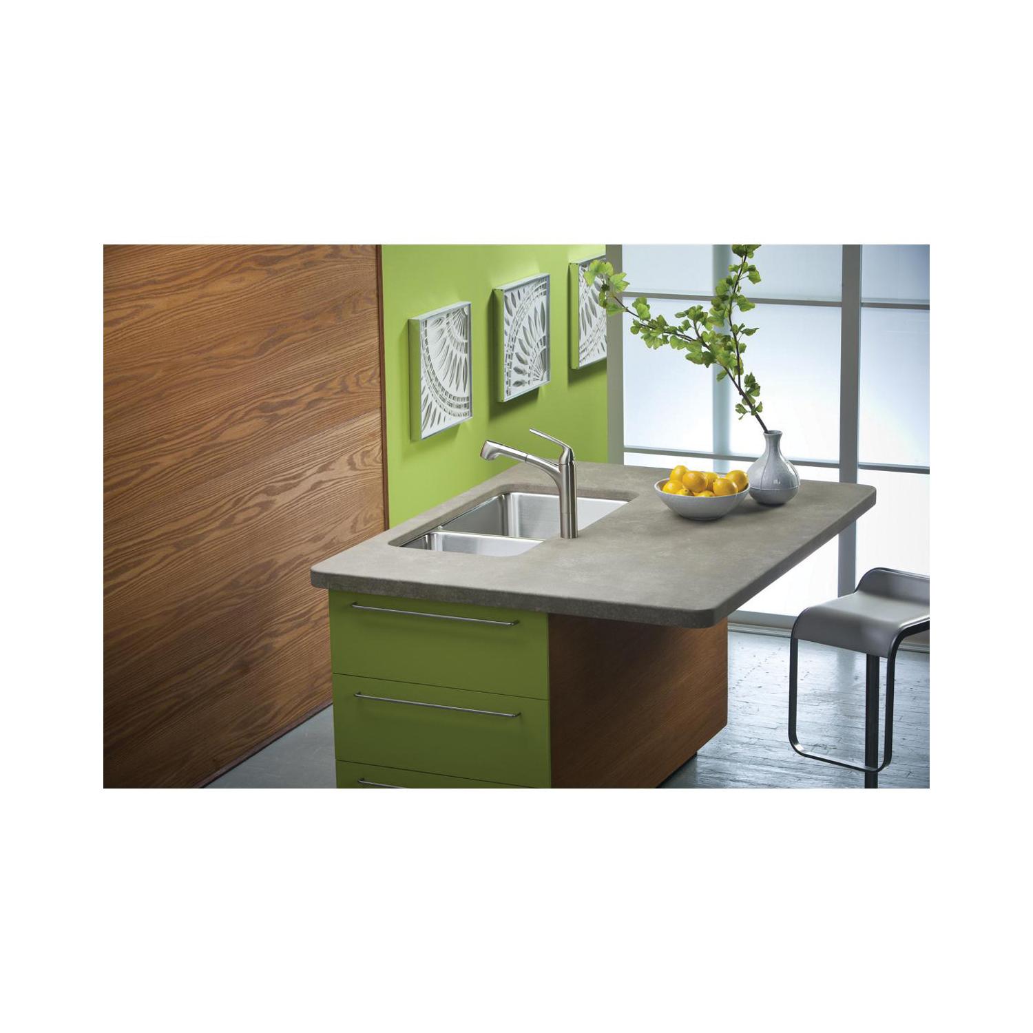 Elkay® ELUH3520R Lustertone™ Classic Offset Kitchen Sink, Rectangle Shape, 20 in Left, 11-1/2 in Right L x 18 in Left, 16 in Right W Bowl x 9-7/8 in Left, 7-7/8 in Right D Bowl, 35-1/4 in L x 20-1/2 in W x 9-7/8 in H, Undermount Mounting